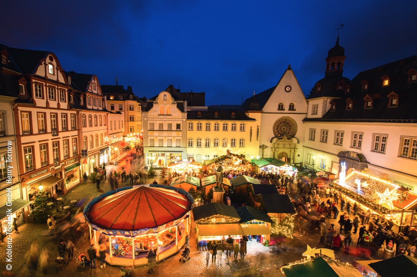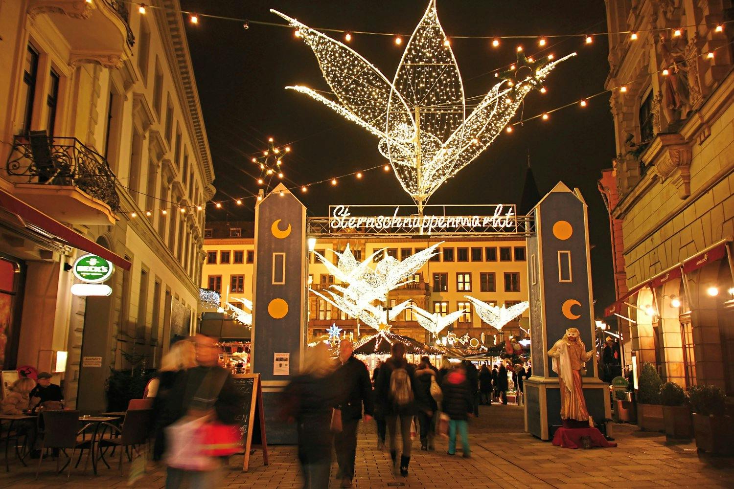 Vier Weihnachtsmärkte für alle Sinne! Mit leuchtenden Augen am Wiesbadener Sternschnuppenmarkt, eine Feuerzangenbowle unter Koblenzer Zwiebeltürmen, das Flair des Baden-Badener Christkindelmarkts und Badischer Weihnachtsgenuss rund ums Freiburger Münster.