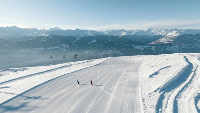 Anreise: Mit dem Zug bis Sierre. Von dort bringt Sie die historische Standseilbahn in rund 15 Minuten direkt in die Station, von wo aus kostenlose Shuttlebusse zu den wichtigsten Punkten fahren.