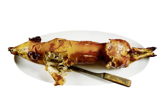 Um ein ganzes Spanferkel grillieren zu können, braucht man einen speziellen Drehgrill, der gross genug dafür ist. Solche Grills können, etwa für eine Party, auch gemietet werden. Ein Spanferkel mit einem Totalgewicht von 15 bis 20 Kilo reicht locker für ein Dutzend Gäste. Das junge Schweinefleisch, das mariniert und dann langsam einige Stunden grilliert wird, bietet einen zarten, würzigen Fleischgenuss. Für den normalen Grillabend zu Hause reicht aber ein Teil eines Spanferkels. Etwa eine Keule, also das Schinkenteil samt Knochen. Das Fleisch der Keule ist von einer Fettschicht bedeckt, die man am besten kreuzweise einschneidet und mit Gewürzen oder einer Marinade einreibt. Das ergibt dann eine würzig-knusprige Kruste. Das Spanferkelfleisch ist bei einer Kerntemperatur von 75 Grad durchgegart.
