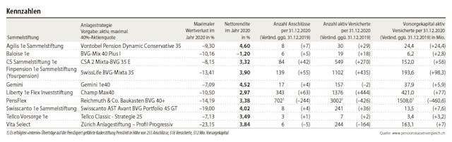 Trotz den kurzfristig hohen Verlusten verzeichneten Aktien in der Folge enorme Kursgewinne und beendeten 2020 mit einer mehrheitlich positiven Performance. Die Renditedifferenzen der Kassen sind enorm. Die Spannweite geht von –1,2 bis 4,6% Performance.
