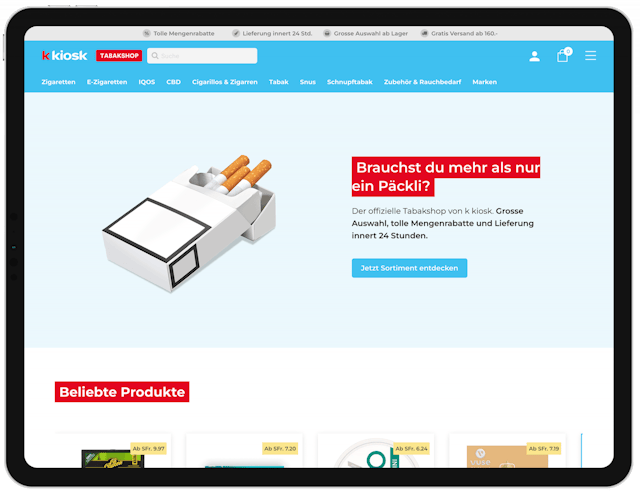 k kiosk Tabakprodukte werden nur an erwachsene Personen verkauft. Die Altersverifizierung erfolgt im Bezahlprozesses über einen Scan von Identitätskarte, Pass oder Führerausweis. Zudem werden Sie dazu aufgefordert, ein Bild von Ihnen hochzuladen. Deine Informationen werden selbstverständlich datenschutzkonform verarbeitet.