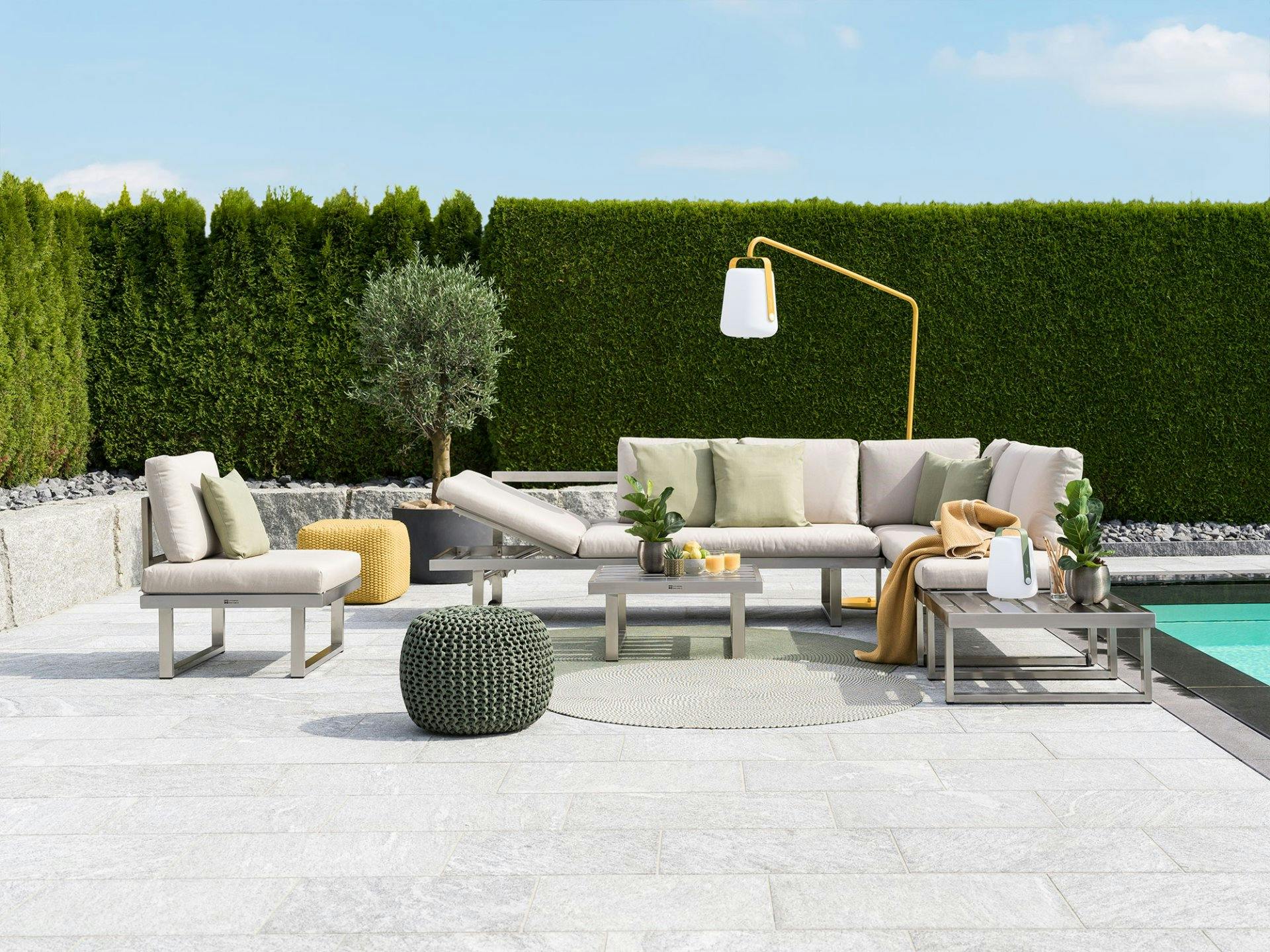 Die Fusion von Komfort und Design zeigt sich in modernem Gartenmobiliar mit ergonomischen Formen und weichen Polsterungen, die nicht nur bequem sind, sondern auch ästhetisch ansprechen. Diese Möbel sind dank neuer Technologien ideal für den Aussenbereich geeignet.